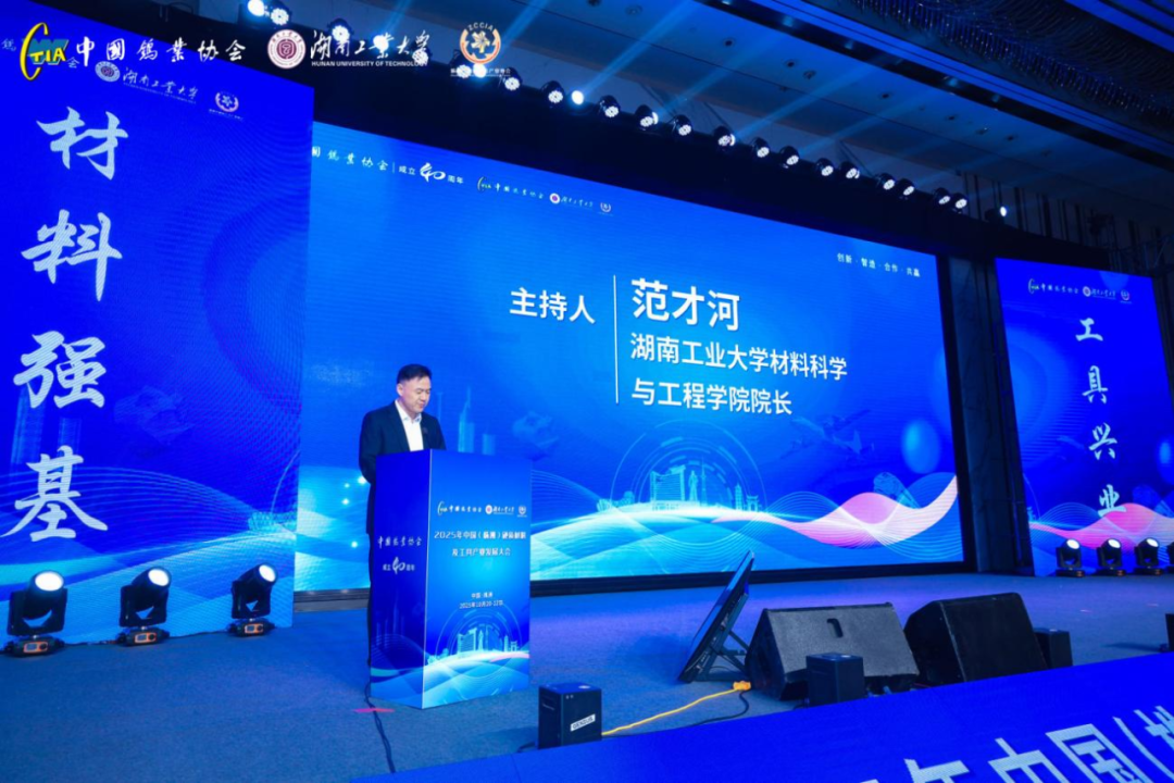 10月20日至22日,2025中国硬质材料及工具产业发展大会在湖南株洲举办。大会以“创新、智造、合作、共赢”为主题,由中国钨业协会、湖南工业大学、株洲市硬质合金产业协会联合主办。中国工程院院士黄伯云、赵中伟,中国有色金属工业协会副会长、中国钨业协会会长陈学森,市委书记曹慧泉,市委副书记、市长陈恢清,我校校长蒋昌波、副校长龙永红等出席会议。500 余名专家学者、企业代表齐聚一堂,共同探讨产业升级路径。