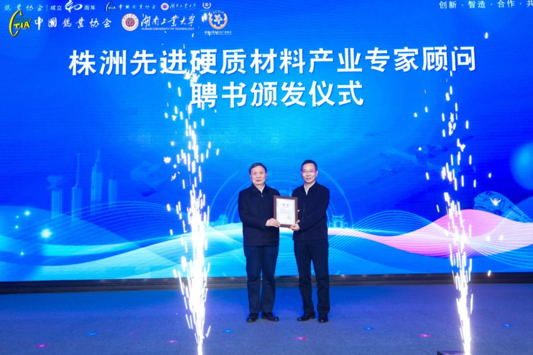 在合作签约与聘书颁发环节,株洲市委副书记、市长陈恢清为中国工程院院士黄伯云颁发“株洲先进硬质材料产业专家顾问”聘书,标志着本地产业发展正式引入顶尖智力支撑,助力技术攻关与人才培养。