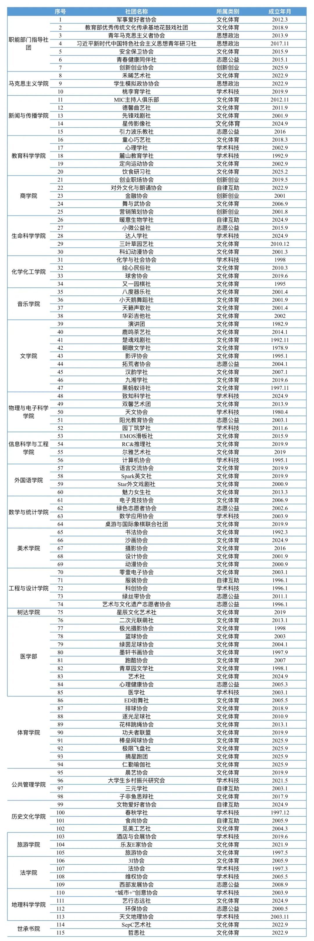 六大类别,115家社团