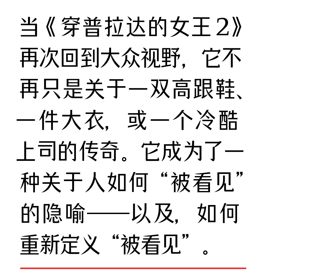在《穿普拉达的女王2》里,三种女性代表三种人生节奏,比如米兰达,她代表的依然是权力巅峰。