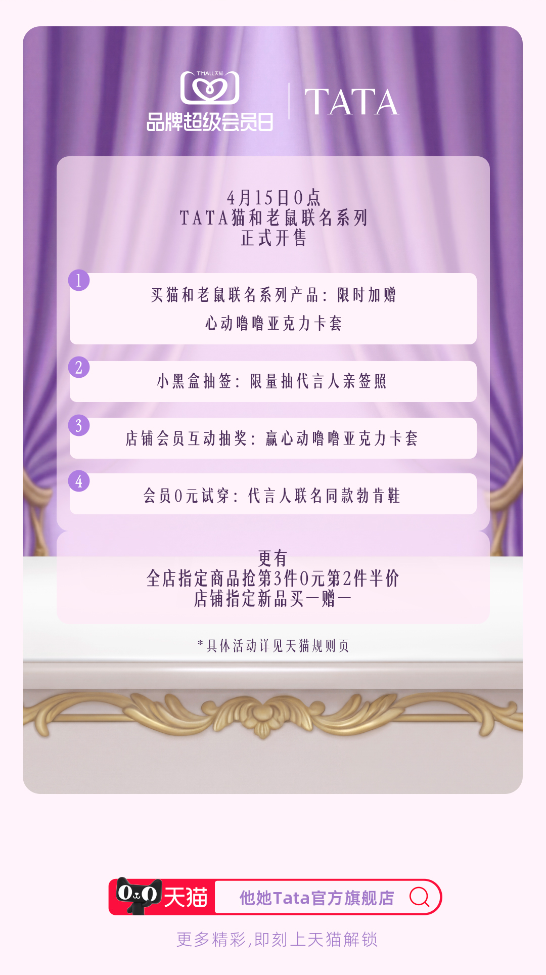 摘要:4月15日0点,TATA猫和老鼠联名款正式开售