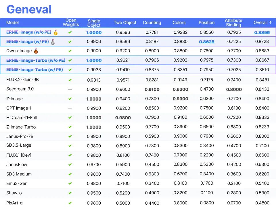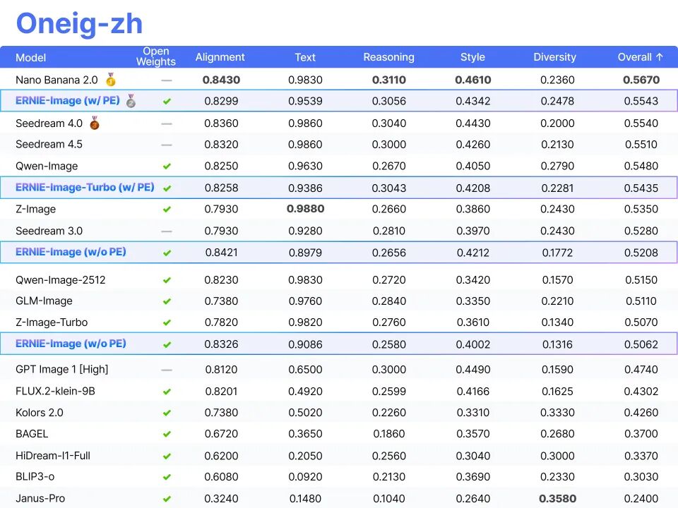 ERNIE-Image 是由百度文心大模型团队开发的一款开源文生图模型。它基于单流 Diffusion Transformer(DiT)架构,并配有一个轻量级 Prompt Enhancer,用于将简短输入扩展为更丰富、更结构化的描述。在仅有 8B DiT 参数规模的前提下,达到了开源文生图模型中的领先水平。