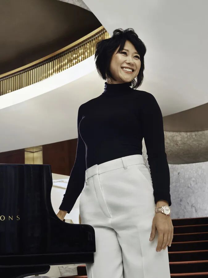 左:钢琴家王羽佳,第66届格莱美音乐奖