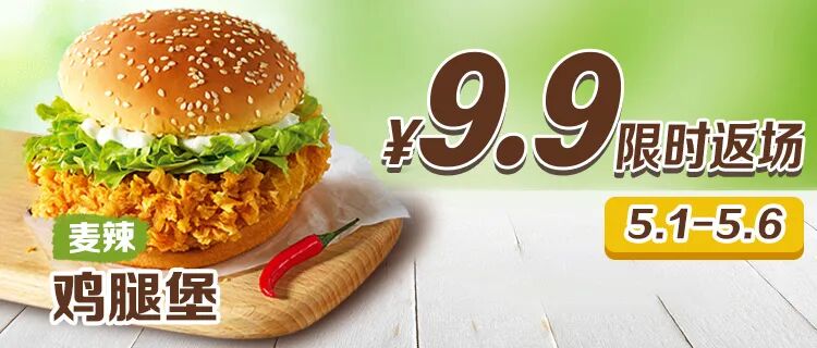 上述产品仅限早餐时段后供应,早餐供应时间以餐厅实际供应情况为准,至上午10:30结束。通过麦乐送®送餐服务、麦当劳APP、微信小程序,自助点餐机、第三方外送平台等渠道点餐的,优惠活动参与情况以各自渠道的图示宣传为准。除推广产品外,其他物品不在售卖范围。