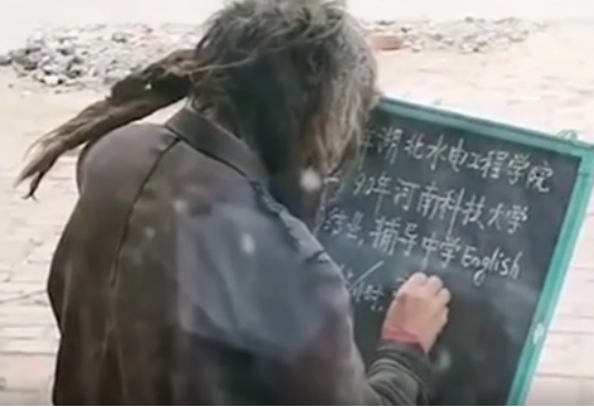 山东一流浪汉模样男子街边写字中英文切换,陵城区民政局:在各地徒步4年,已为该人士做核酸、提供相关帮助。