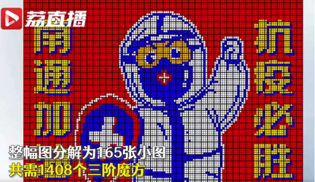 厉害了!南通14名小学生利用网课后的业余时间,完成了一个特殊的魔方拼图作品《坚守在防疫一线的"大白"》。