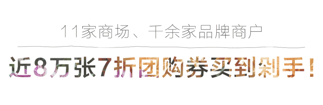 没有复杂的满减算法,宠粉如徐家汇,只有实实在在的补贴折扣,购物节期间将上线近80000张7折团购券,可谓抢到就是赚到。