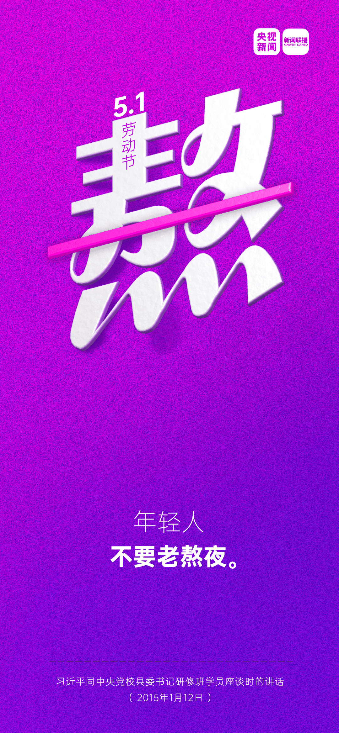 今天是“五一”劳动节。人生在勤,勤则不匮。但在现代社会,很多人工作忙碌,加班熬夜是常有的事。习近平总书记常说幸福是奋斗出来的,他也曾提醒年轻人不要熬夜,要注意劳逸结合。