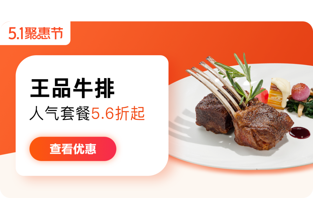 近300份百元大牌代金券,最高王品牛排1098元套餐