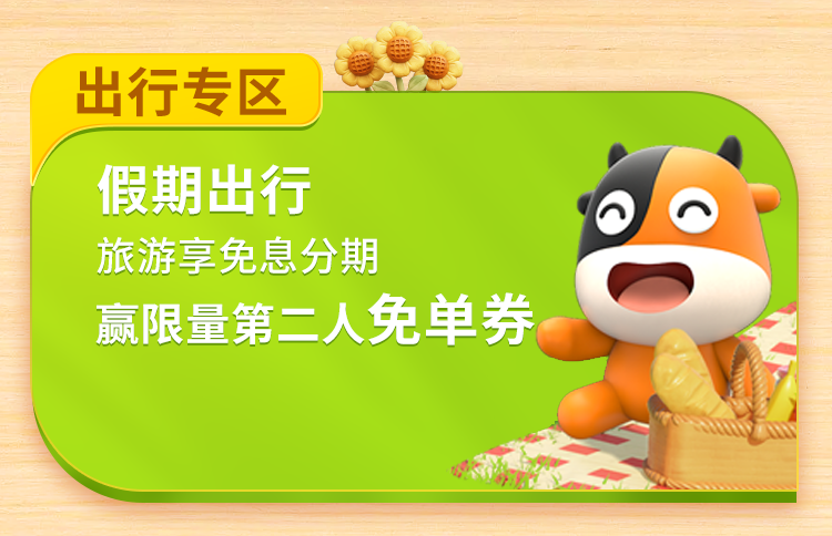 即日起至2023年5月10日,客户通过工银e生活App旅游出行专区选购旅游路线有机会获得限量100份指定产品第二人免单券、指定产品540元优惠券包,及最高510元全场满减券。同时使用工银信用卡支付还可享12期免息分期权益。