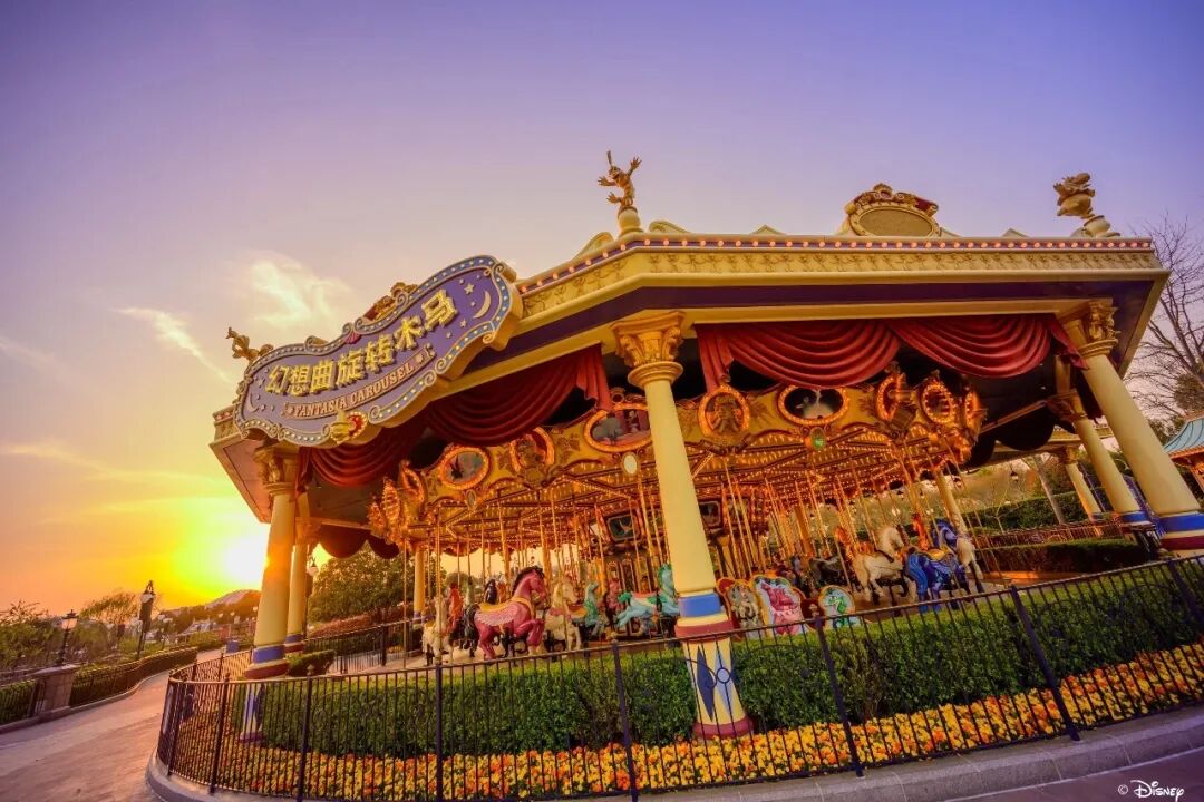 唯独上海迪士尼的旋转木马是缤纷多彩的,