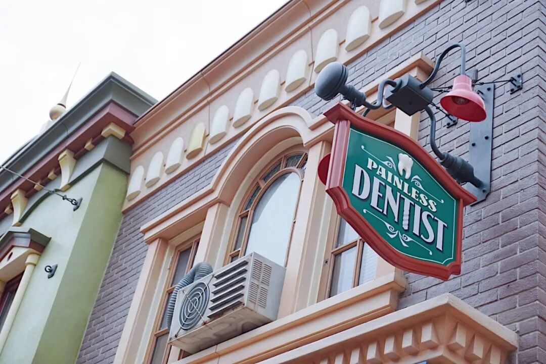 甜心糖果是米奇大街上知名度超级的商店,里面有达菲和朋友们的萌物,和名字一样甜。紧挨着甜心糖果的店铺,你敢相信吗?竟然是一家——牙医诊所!当家的Kanal牙科博士是传说中能“提供无痛治疗的牙医”,但如果站在诊所旁就能听到从二楼橱窗里传来的治疗声,emm……说好的无痛呢?