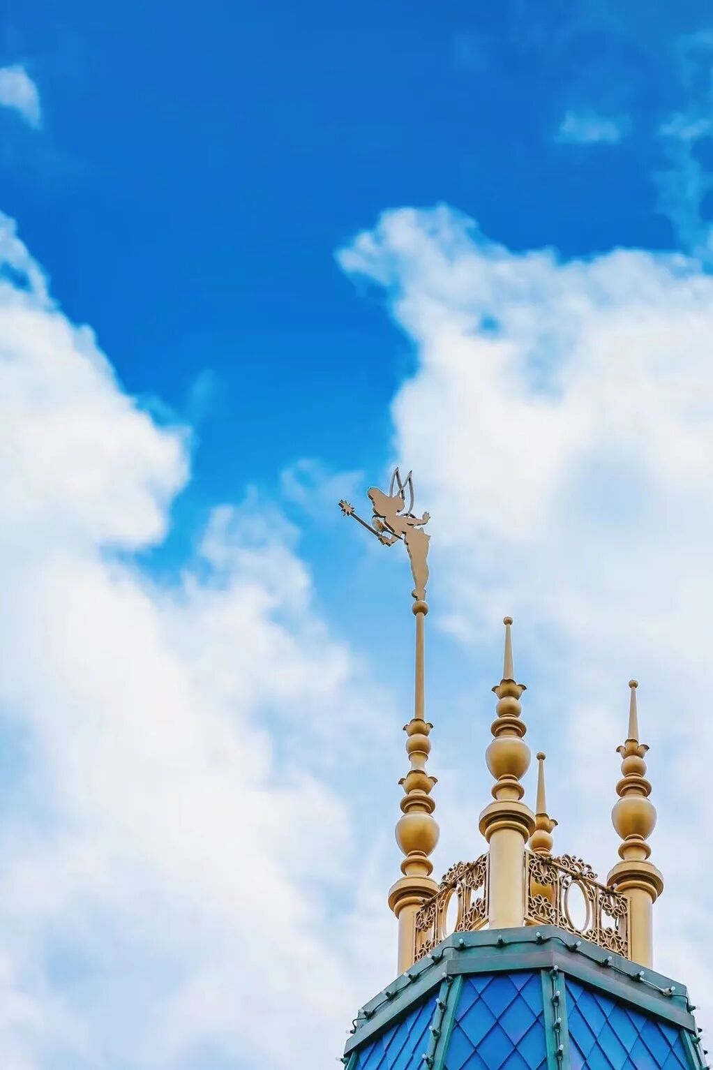 乐园入口是一座钟楼,大家兴冲冲到达的第一个拍照打卡地。但很少有人会发现塔顶有个奇妙仙子风向标,原来奇妙仙子就是在这儿,为大家第一时间撒上仙尘,神奇的一天就此开启!