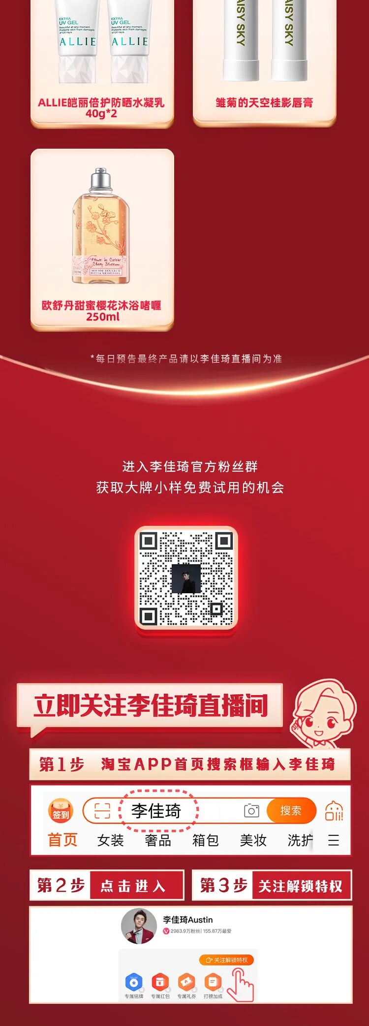 文章内容来源于公众号:李佳琦Austin 点此可查看原文。若涉及版权问题或存在侵权情况,请及时与我们联系,我们将第一时间进行删除处理。
