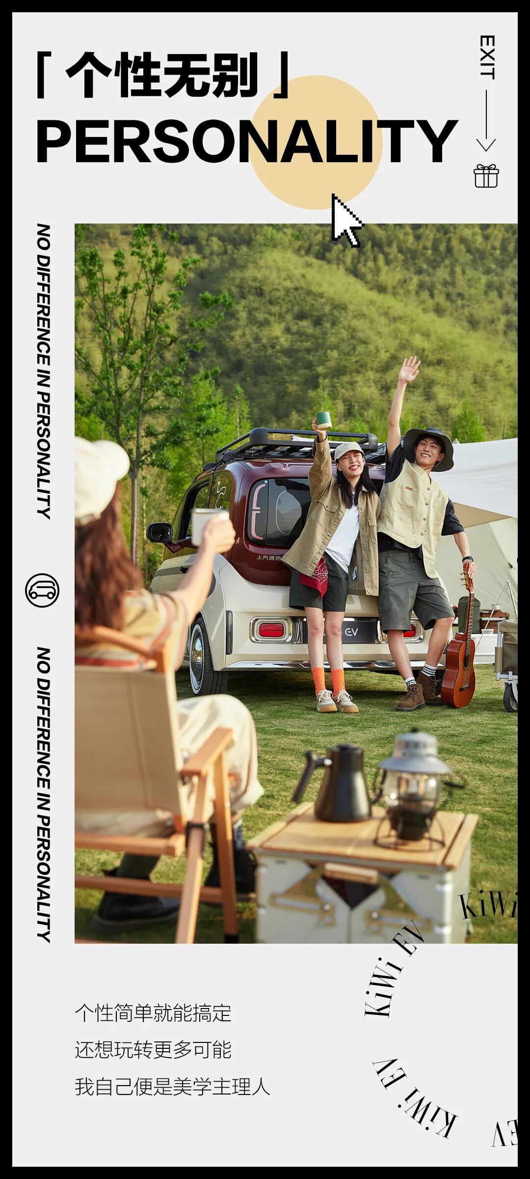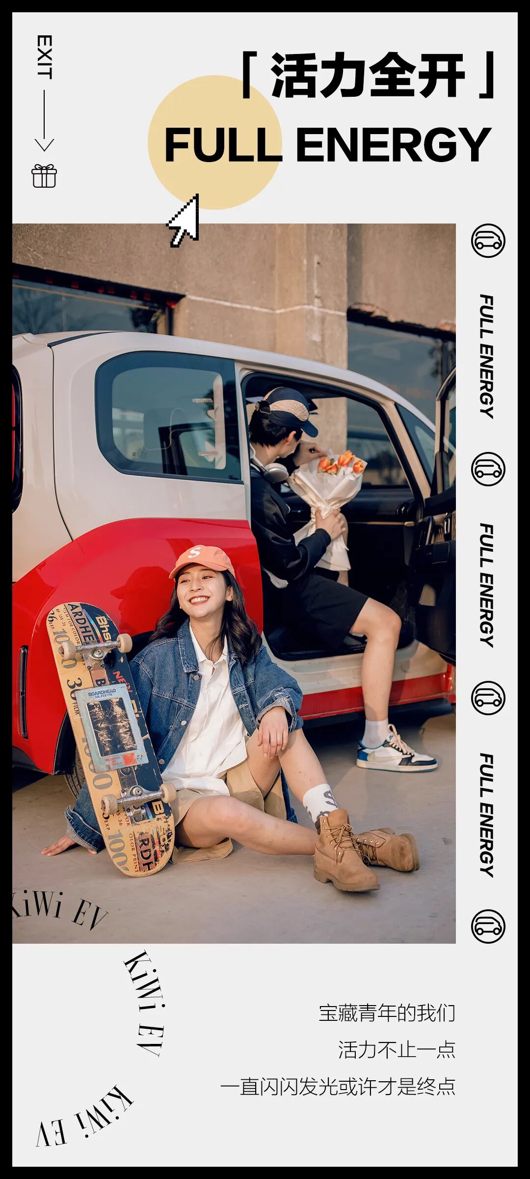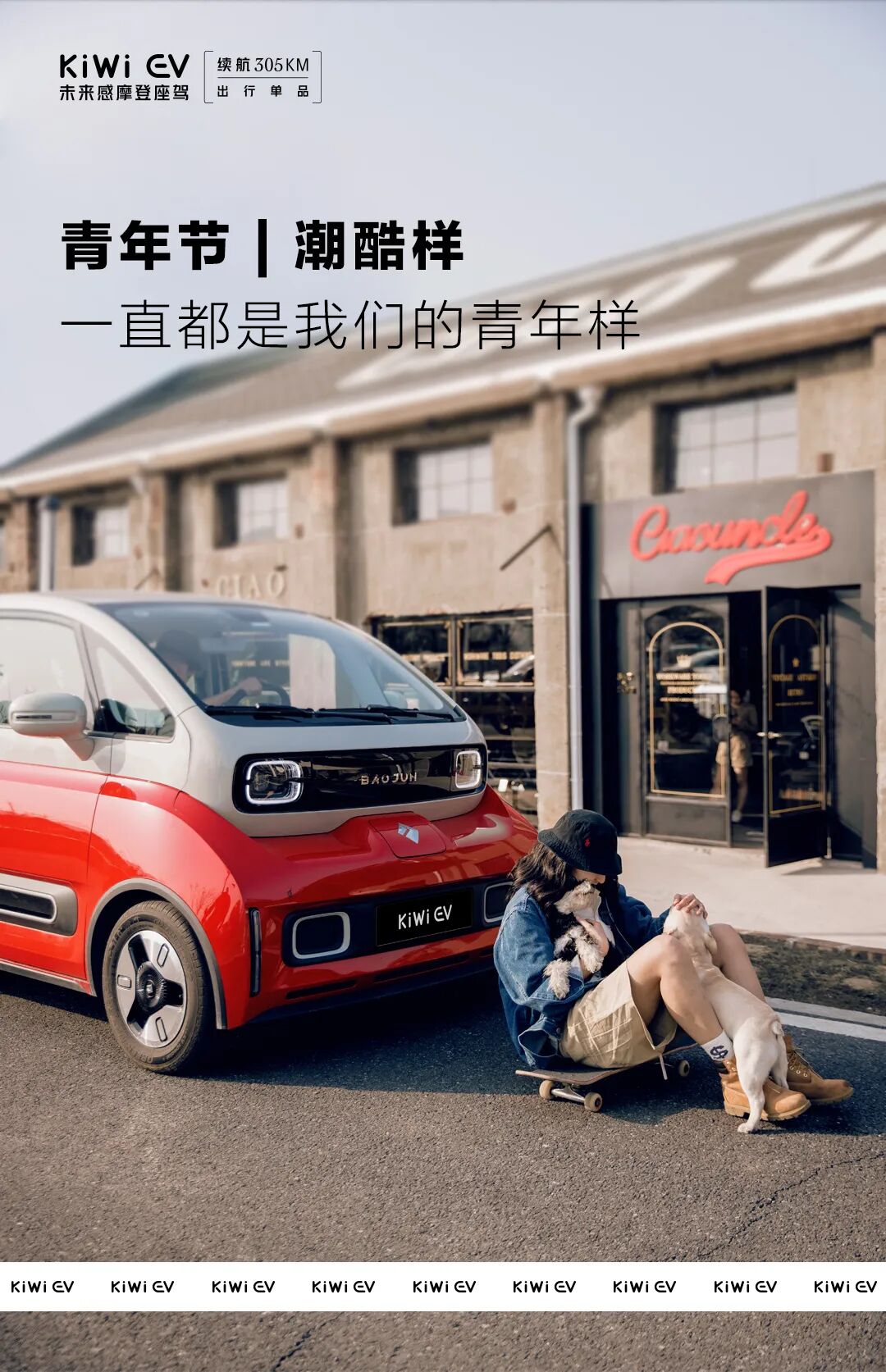 推荐:五四青年节这天,「点击弹出」宝骏青年节态度关键词海报,用汽车美图和态度关键词结合进行营销,吸引大家互动。