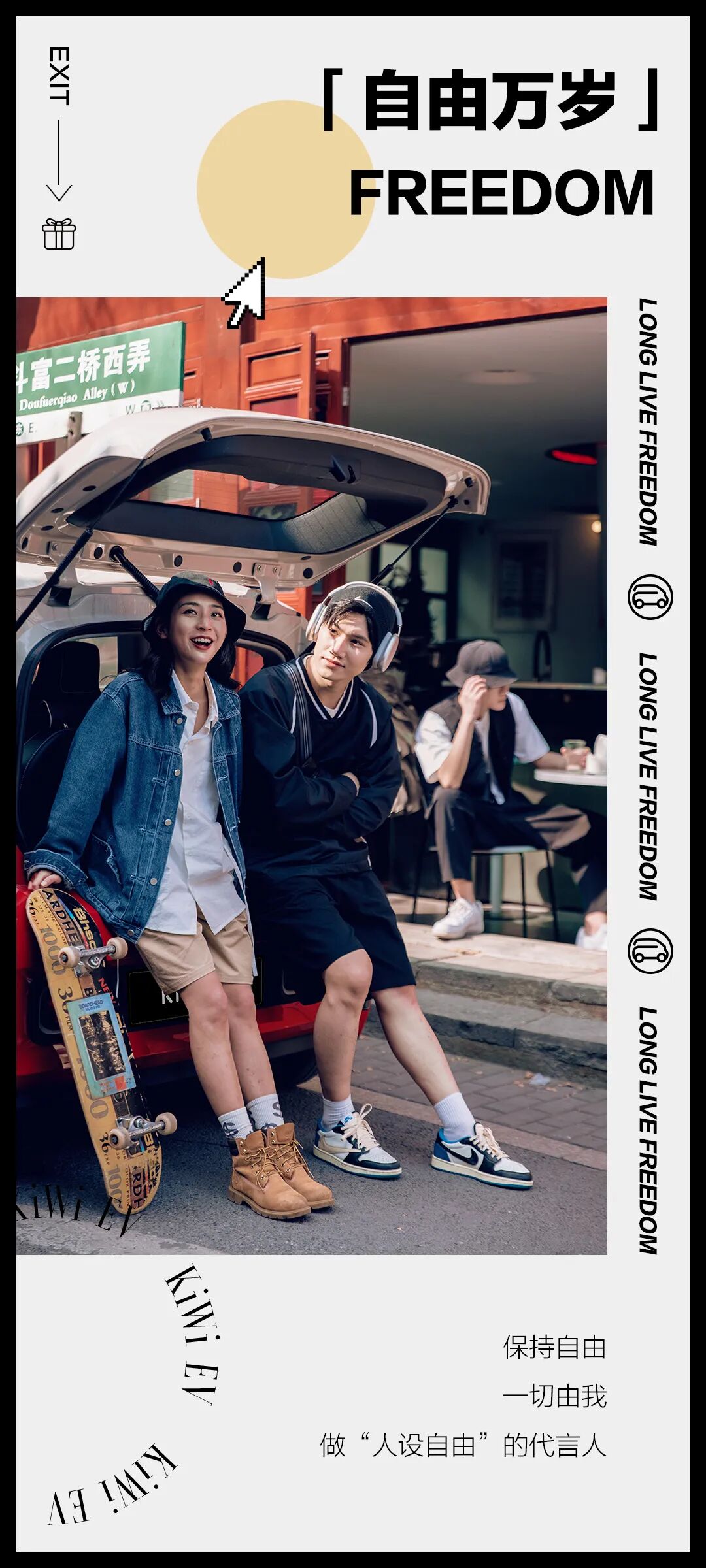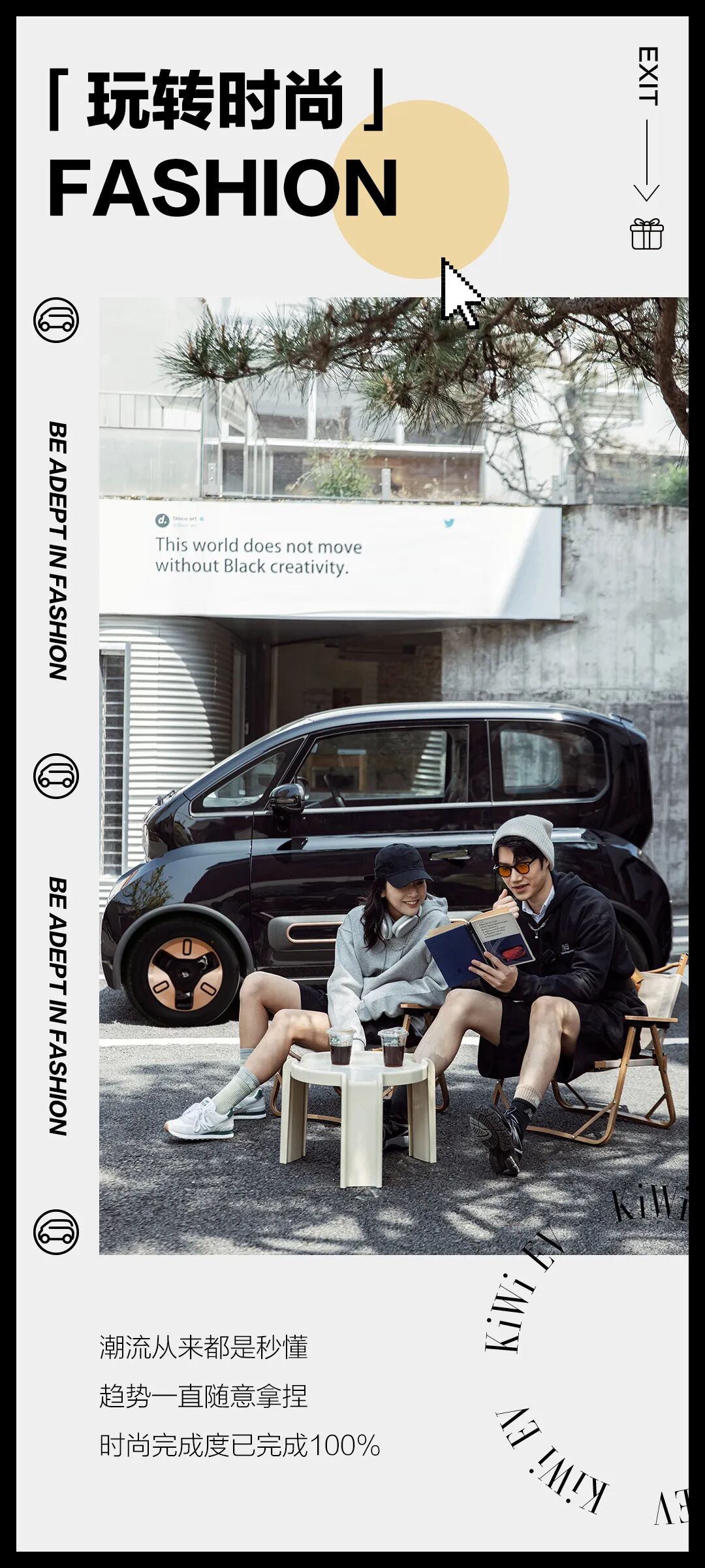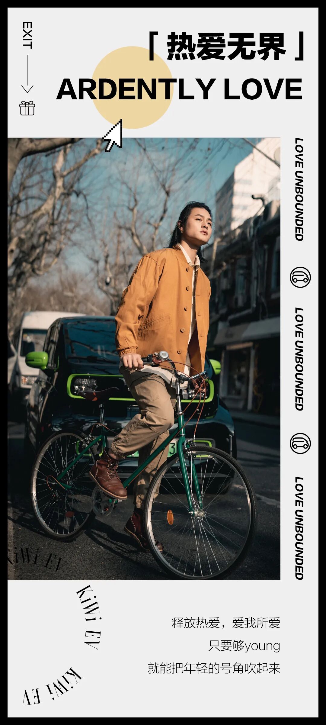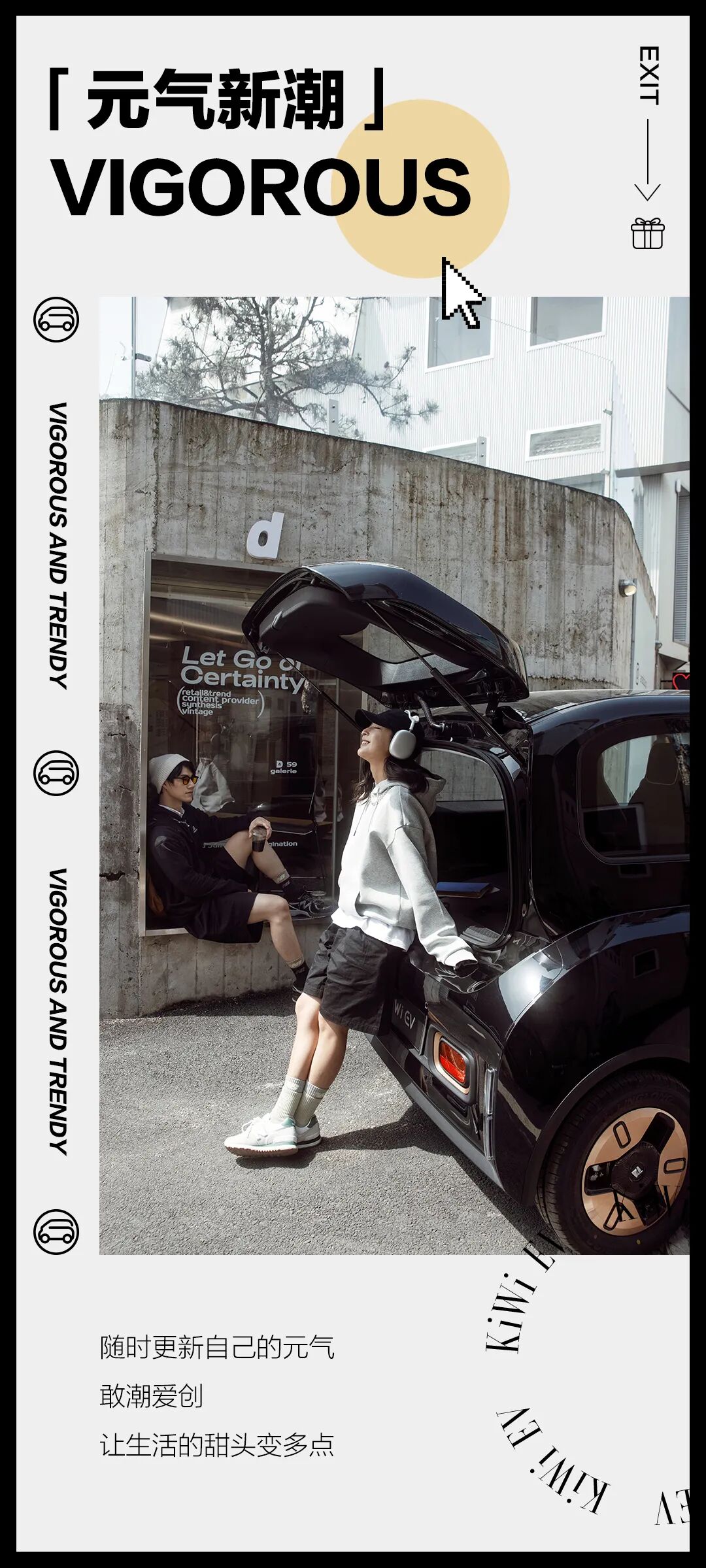 推荐:五四青年节这天,「点击弹出」宝骏青年节态度关键词海报,用汽车美图和态度关键词结合进行营销,吸引大家互动。