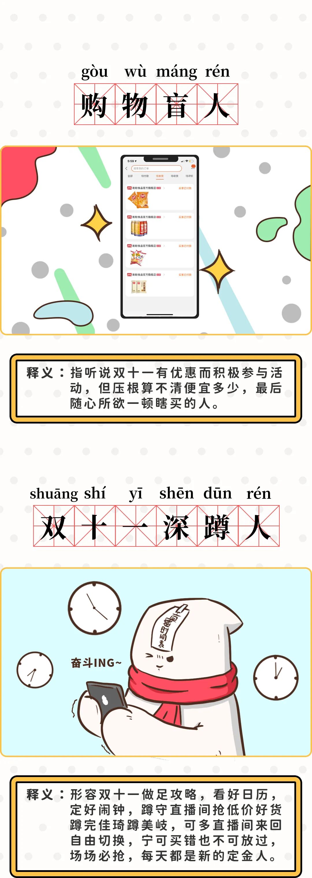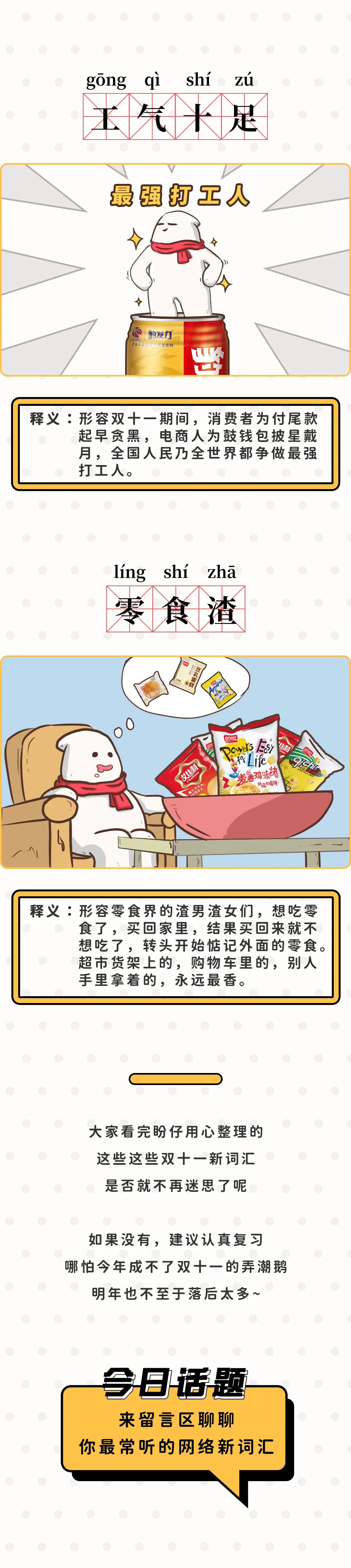 推荐:「点击切换图片+展开」盼盼食品整理的2020双十一新词汇大全,吸引大家互动交流网络新词汇。