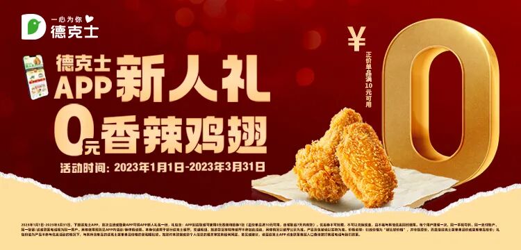 *价格说明:划线价格为“被比较价格”,并非指原价,而是指德克士菜单单品价或菜单单品总价;除非图示另有解释,否则图示如有立省的金额或折扣比例,是与其所含单品的德克士菜单单品价格的总和相比较。*具体价格以门店为准,部分餐厅不参加活动,例如机场、交通枢纽、封闭通路、景区、新疆、酒泉、西藏等地区,具体以实际门店活动为准。