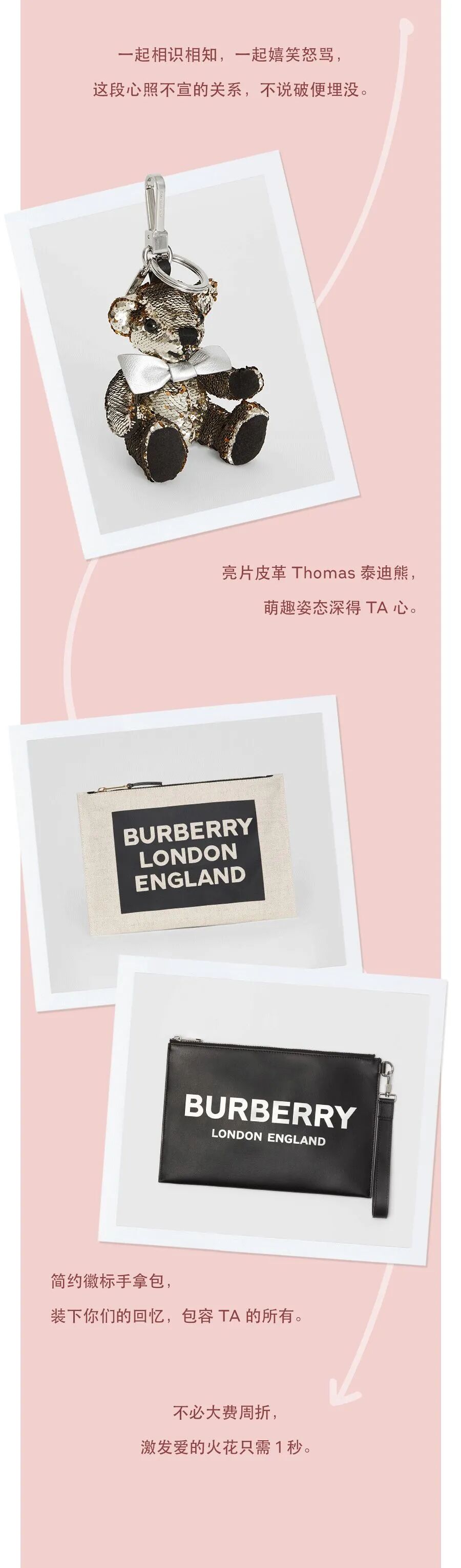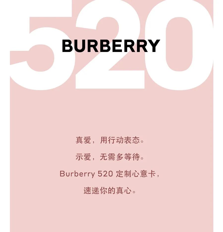 Burberry让全文作为一个整体处于左右滑动的布局之中,老样式顿时有了新体验。“520 I LOVE YOU × 3000”的大字设计也很具有视觉冲击力。