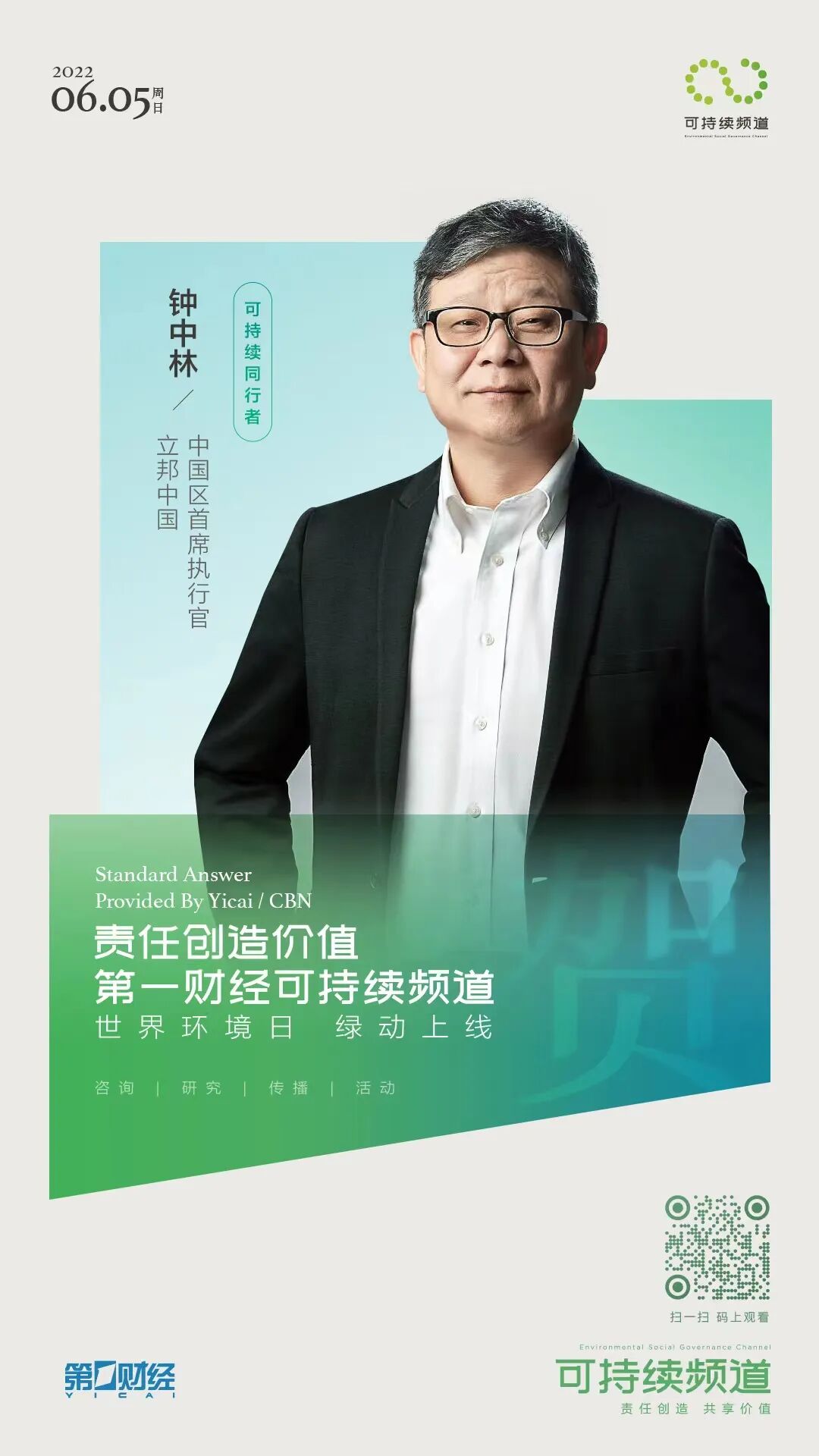 6月5日世界环境日之际,第一财经可持续发展频道正式上线,频道将为全球企业以及投资者提供有关政策与行业低碳发展动态的优质内容,推动中国的可持续发展。受邀作为“可持续同行者”的立邦中国区首席执行官钟中林先生表示: