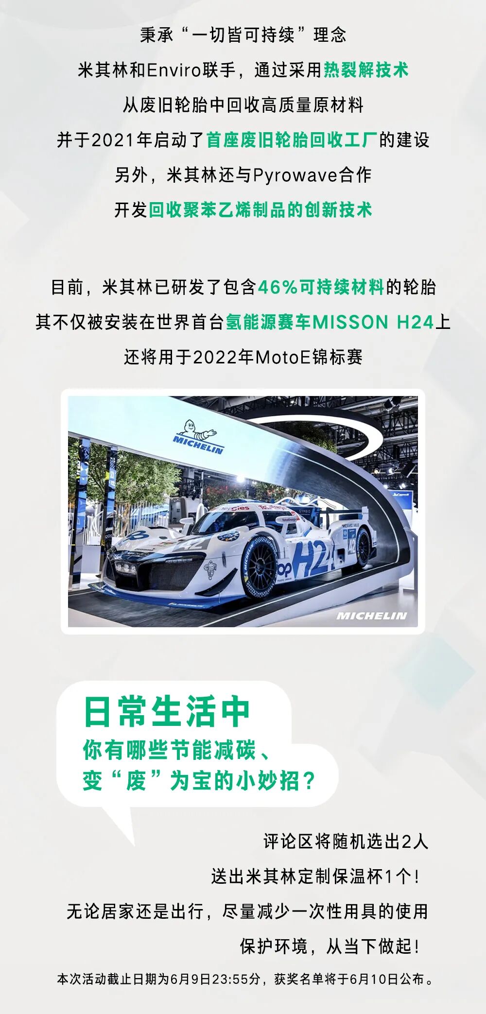 推荐:「左滑」查看米其林VISION概念轮胎的前世今生,宣传米其林轮胎节能减碳、可持续降解理念,吸引大家互动留言环保小妙招。