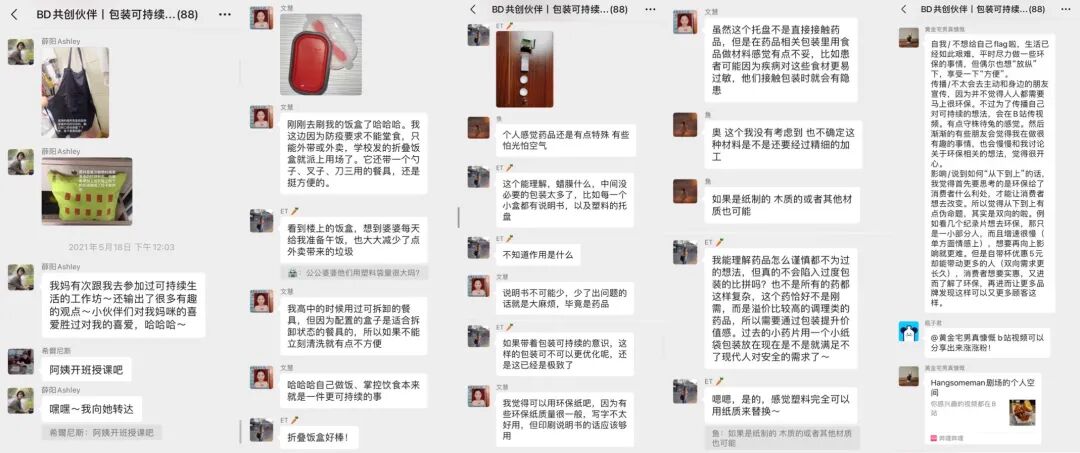 在这次研究中,我们通过社群互动的形式,从日常生活场景中挖掘包装可持续的可能性,让消费者参与到图鉴的共创中。我们还邀请了 5 位国内的可持续年轻达人 ,分享他们在践行可持续生活方式的心得,也聊了聊他们感受到的社群能量。在可持续生活品牌「禾希有物」联合创始人 Nick 的眼中,社群的影响力就像涟漪一样。即使还有很多人不太了解可持续生活,觉得没必要对「垃圾」、「废物」那么上心,但 Nick 觉得能「通过社群活动来先从小范围产生影响,再从小范围影响更多人」。可持续生活社群还孕育了新的潮流与社交方式。例如可持续食物社群「开FUN」,从包裹食物的包装物这个小细节入手,让更多年轻人用「酷」、「时尚」、「潮流」的视角重新定义自己的可持续生活方式。在开 FUN 社群鼓励下,年轻人「带网兜出门」成为新潮流