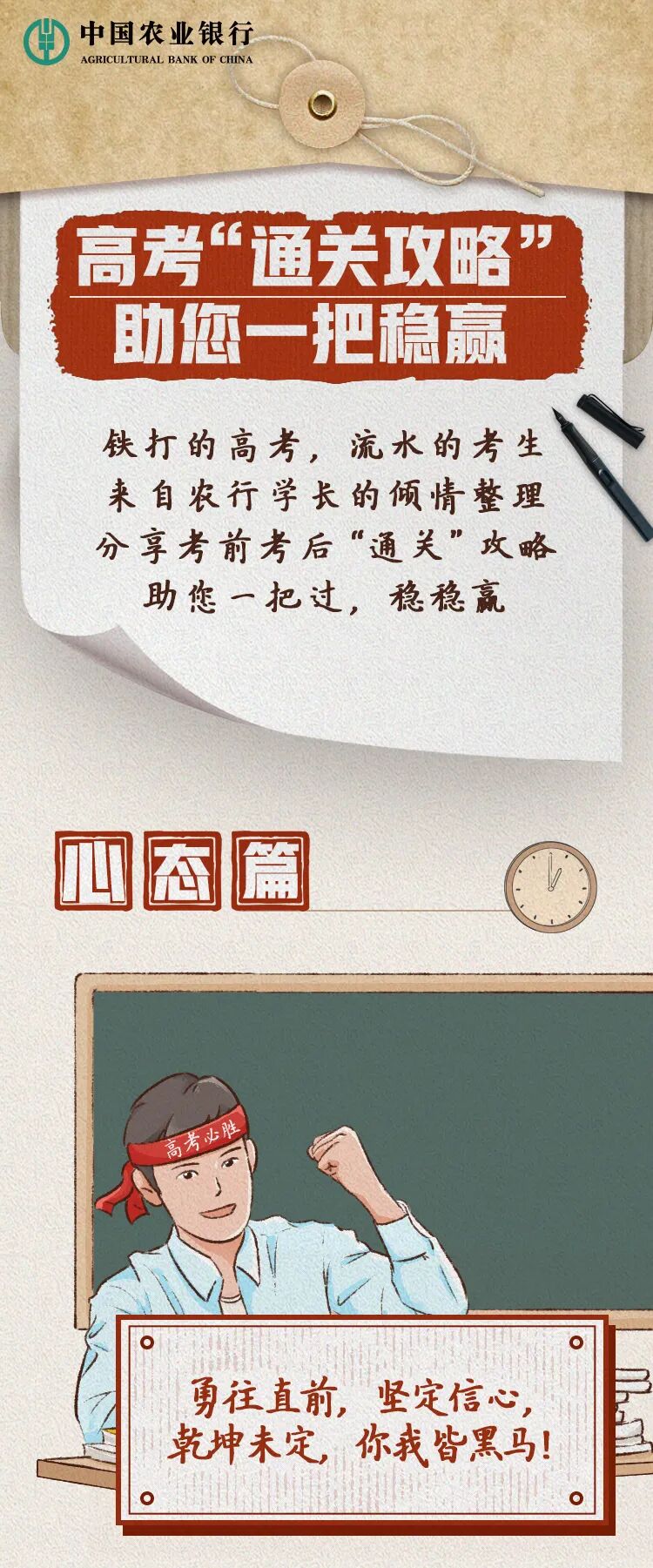 推荐:「点击切换」查看中国农业银行的高考“通关攻略”,借此为高考的学子加油打气。