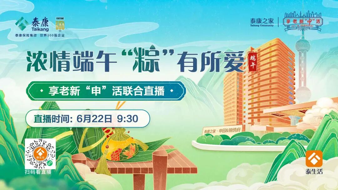 泰康在沪居民如何度过传统又新潮的端午佳节?85+爷爷奶奶与5岁小朋友新潮文艺汇演精彩上映!更有充满传统韵味的奇趣包粽子手工活动,6月22日 9:30,一起跟着直播镜头,开启这场海派享老盛宴吧~