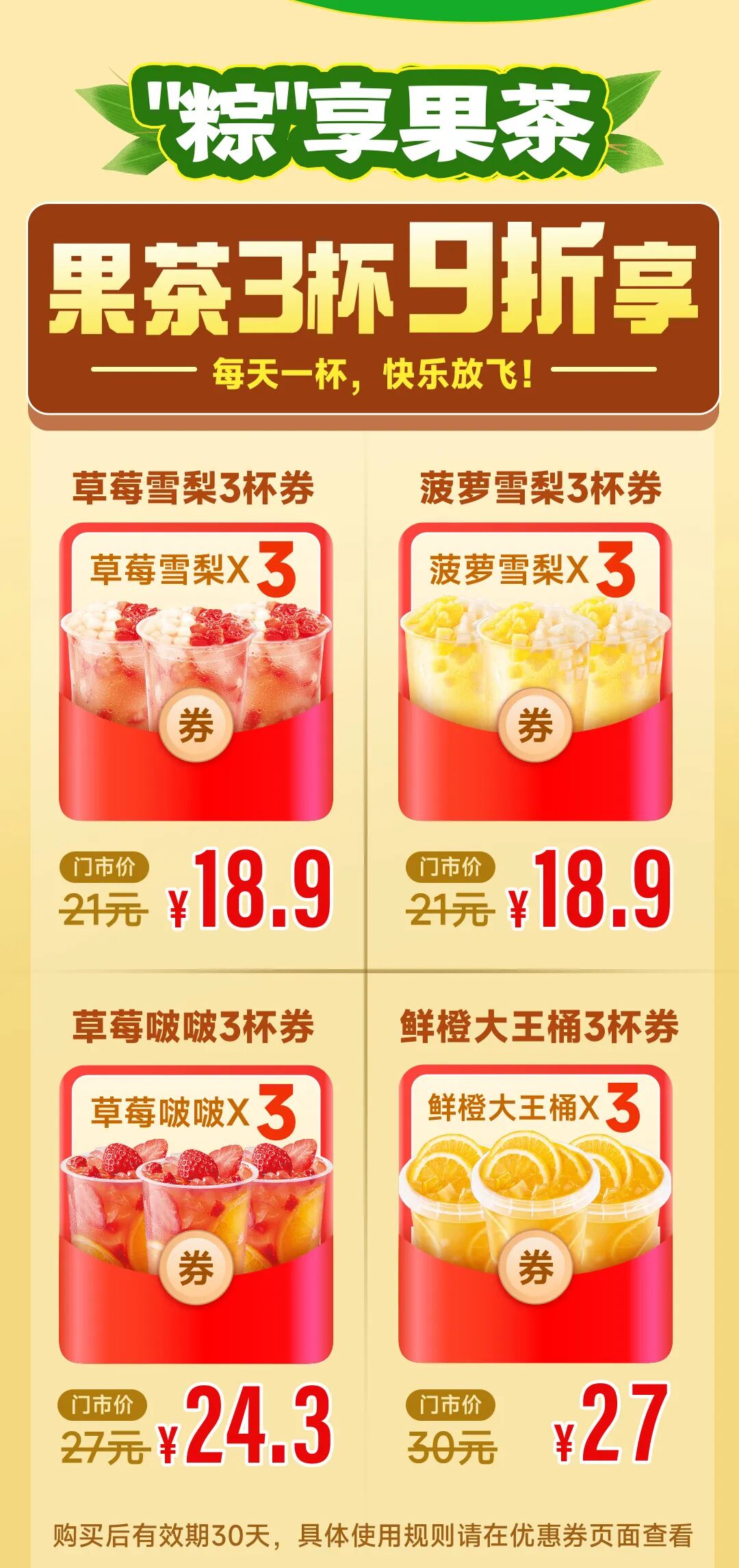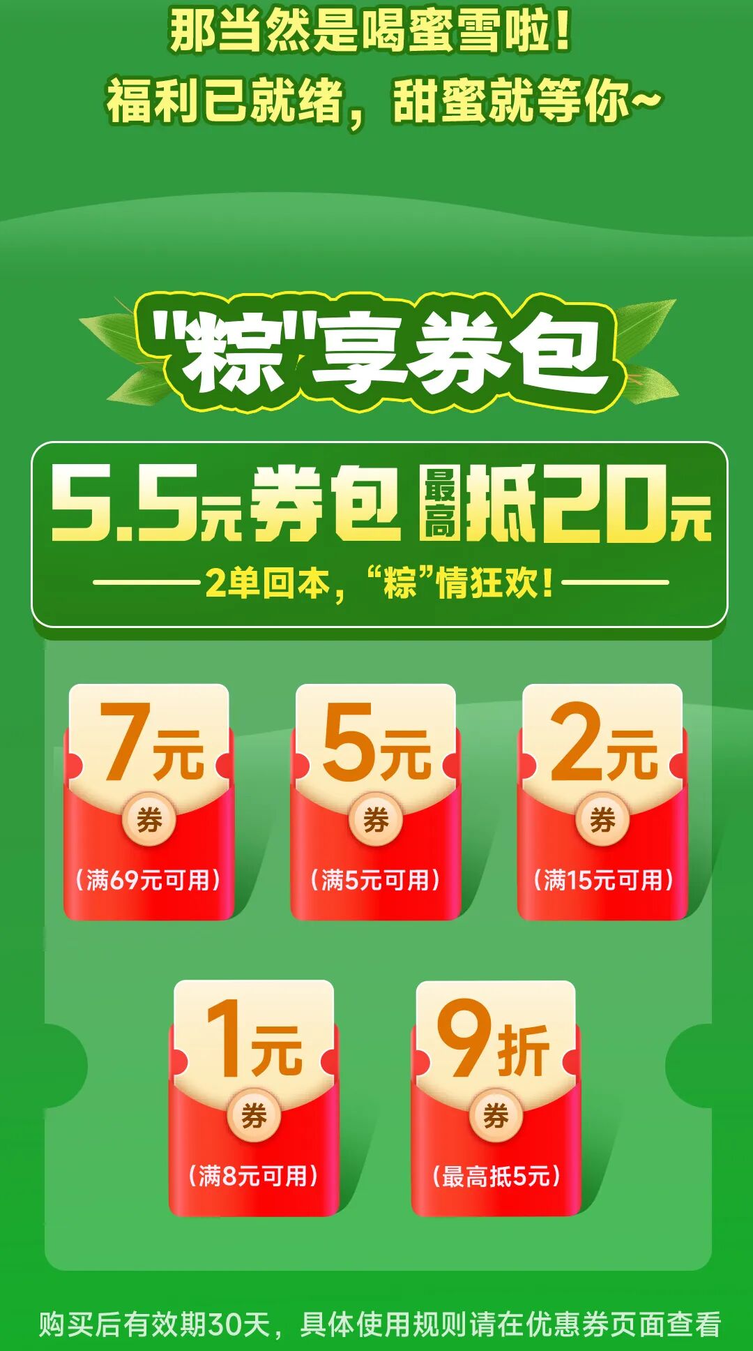 端午"粽"头戏 | 小程序5.5元券包最高抵20元,更有果茶9折享!