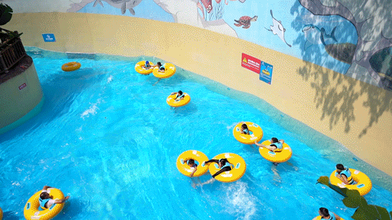 「刺激度适中的室外游乐设施」,穿着浮力衣套着浮游圈,在水中漫游的「巨洪峡」,集小喇叭、小滑梯等多种亲子游乐设施于一体的「缤纷水屋」。大到65岁的老人,小到几个月大的小宝,都能在古海王国体验玩水的乐趣。