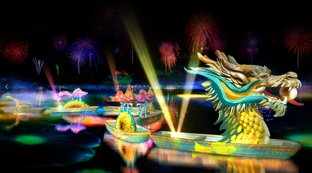 告别以往划龙舟的传统玩法,把龙舟表演从白天切换到夜间。以龙舟灯展的形式,让家人度过一个有闪亮的端午节。![]()
