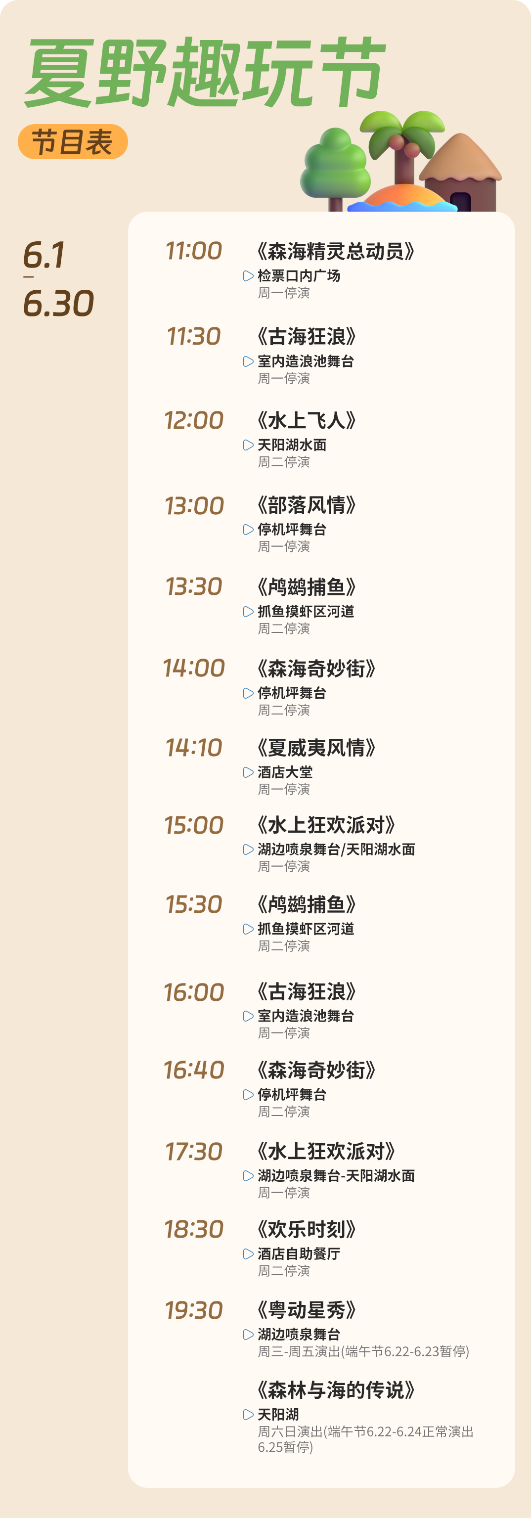 我们整理了一份「夏野趣玩节活动日历」,赶紧提上日程,带家人度过最趣野的夏天吧!![]()