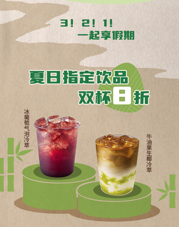1、双杯饮品8折活动门店:全国门店(不含交通枢纽店、新疆区域店、海昌海洋公园店、国家会展中心店、海口免税城店、Tims灵枫店、Tims易捷店) ,门店类型请查看Tims咖啡小程序;活动时间:2023年6月12日-7月2日;活动渠道:小程序自取、门店 POS点单,外送不参与;活动可选饮品:冰葡萄气泡冷萃、葡萄天乐雪、香椰水冷萃、鲜萃咖啡-深度烘焙、拿铁、牛油果生椰冷萃、爆打柠檬冷萃、美式,活动套餐仅限中杯,详情以小程序菜单显示为准;双杯8折活动的折价基准为指定产品不参与优惠活动情况下在门店单独购买单品的单买价总和。