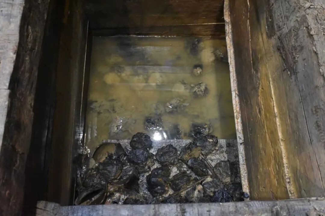 还有很多破损散落在椁室底部,