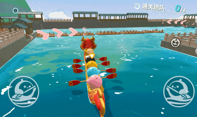 每支队伍内共四位蛋仔同划一条龙舟