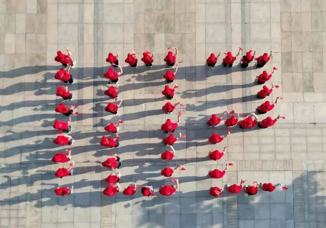 7月1日前,长庆油田油气工艺研究院和新闻中心举办“齐心向党 健康同行”庆“七一”健步行活动,近200名员工摆出“七一”、五角星、“102”多个有特殊意义的造型,为党庆生。