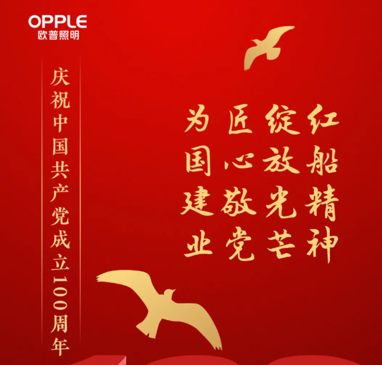 学红船精神,绽放光芒;匠心敬党,为国建业。欧普照明庆祝中国共产党成立 100 周年:以匠心敬党心,实干兴邦、全力以赴。