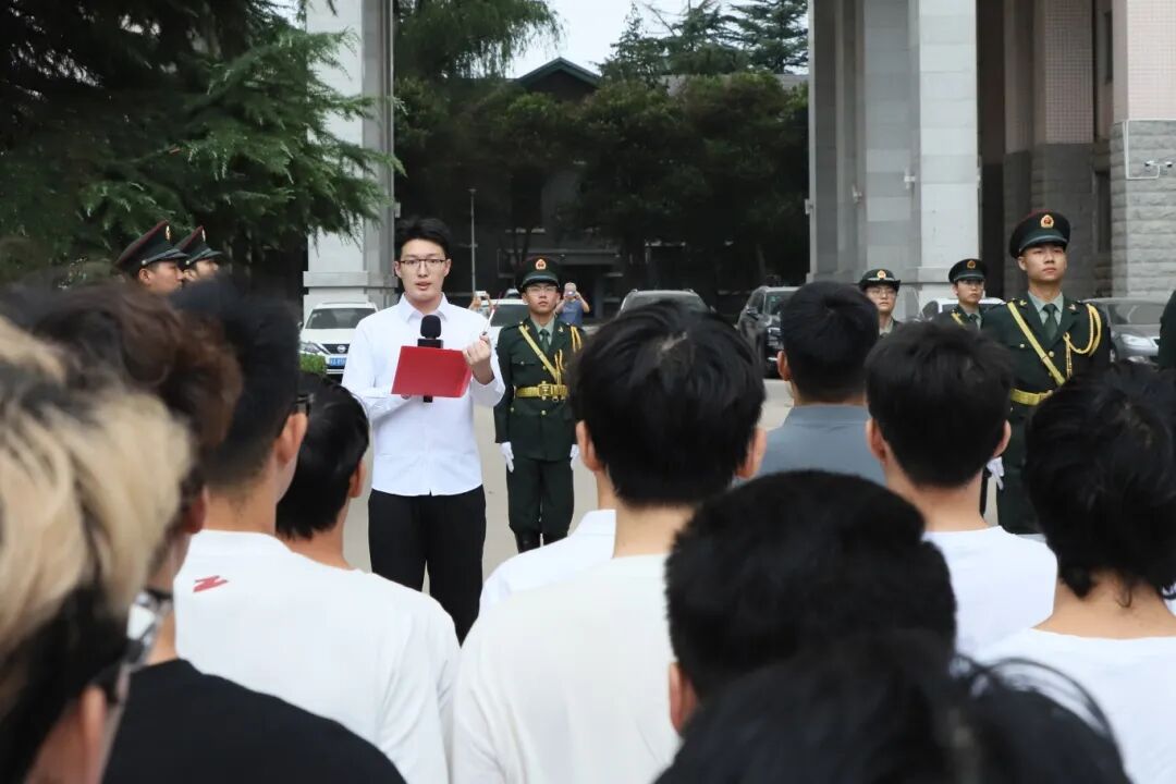 力学系21级2班团支书阚飞宇同学作为学生党员代表在国旗下讲话:作为新时代的大学生,我们要坚定理想信念,锤炼良好品格,努力学习科学文化知识,走出课堂,积极为社会做贡献;要将个人理想与国家命运紧密相连,将个人奋斗与民族复兴紧密相连,以实际行动为实现中华民族伟大复兴中国梦而努力奋斗!