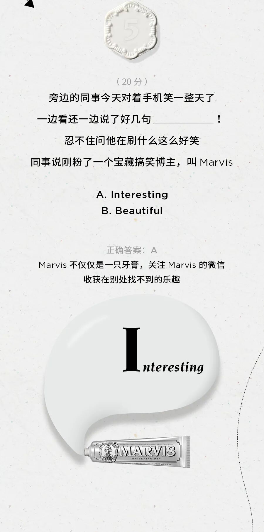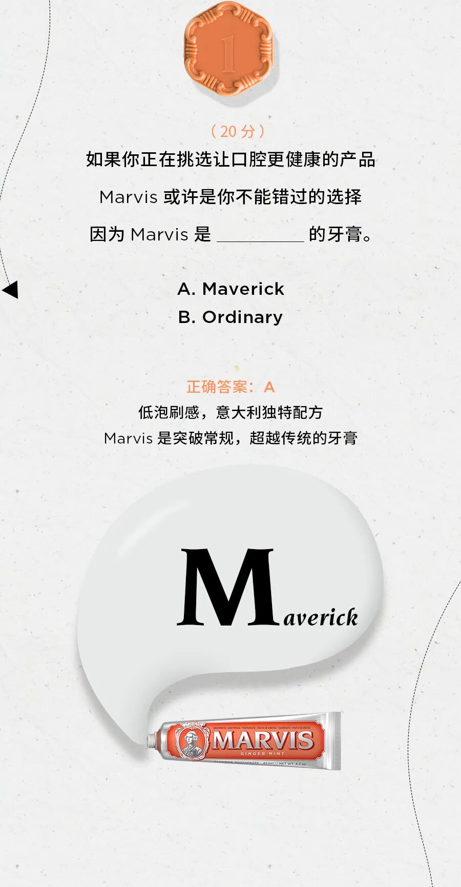 推荐:「点击切换」查看Marvis的相关考题,吸引大家晒分互动领经典薄荷系列牙膏随机口味一支。