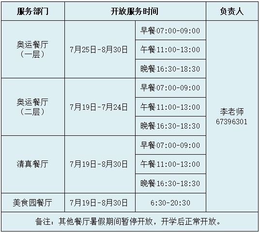 第一教学楼:7月15日至8月31日(7:00-22:30)开放2层,3层教室