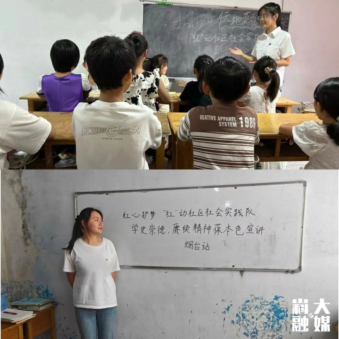 在青岛的革命火焰中淬炼心灵,参观革命烈士纪念馆与党史博物馆以及青岛市博物馆后,红心护梦“红”动社区社会实践队带着历史的沉重与光辉,于8月1日建军节当天来到滨州阳信欧李村。在那里,我们举办了“天地英雄 民族脊梁”红色宣讲活动,分享中国历史上的英雄故事,每个故事都如同火种,点燃了青少年心中的爱国激情。5日后的烟台莱阳鸿达社区,我们的宣讲活动变成了一场童心向党的盛宴。小朋友们聚精会神,听着延安精神等红色革命精神的故事,他们的眼睛里闪烁着对英雄的敬仰和对未来的憧憬。这不仅是两场宣讲,而是一次心灵的触碰,一段历久弥新的传承。