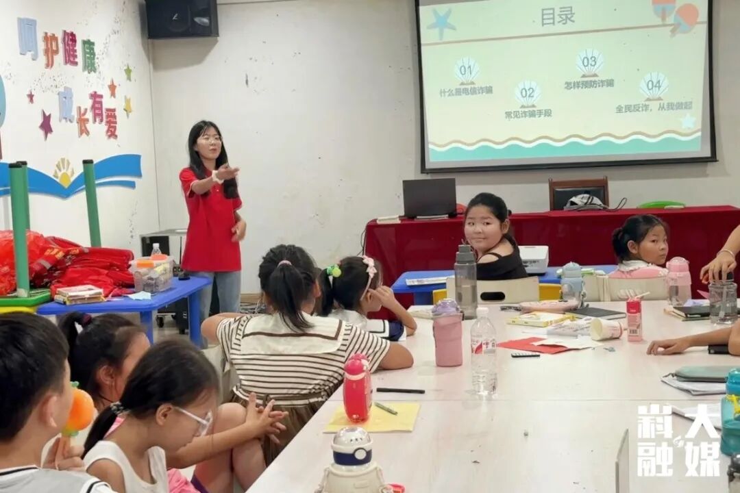 2024年8月4日,走进汶上县东和园社区,我认识了一群可爱的小朋友。打破清晨宁静的是朗朗书声,在团队志愿者的陪伴下,小朋友们一起诵读中华经典,描绘着自己的梦想。除此以外,我们结合专业知识,设计了不同的安全教育课程:如防范电信诈骗、应急安全教育、环境与粮食安全等,以知识大比拼的方式充分调动大家的积极性,为小朋友们各方面的安全筑牢意识保障墙。同时,素质教育同样是促进儿童多方面发展的重要渠道。团队带着大家打太极、做风筝、练毛笔字,为小朋友们的假期生活画上了浓墨重彩的一笔。