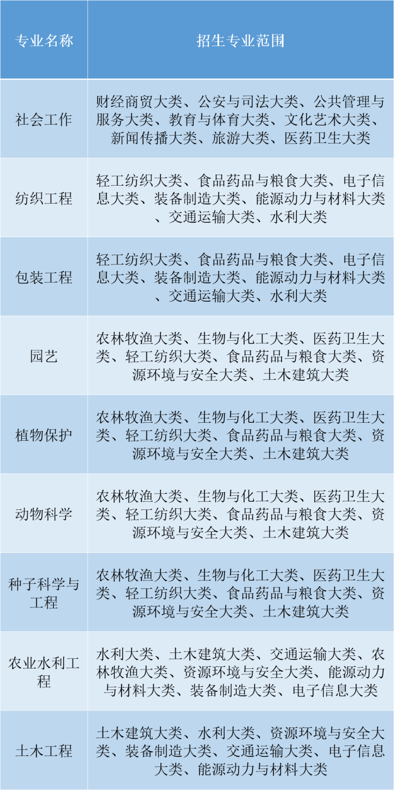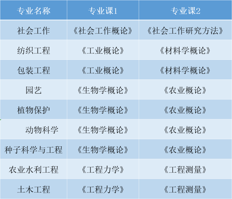 农业水利工程:水利大类、土木建筑大类、交通运输大类、能源动力与材料大类