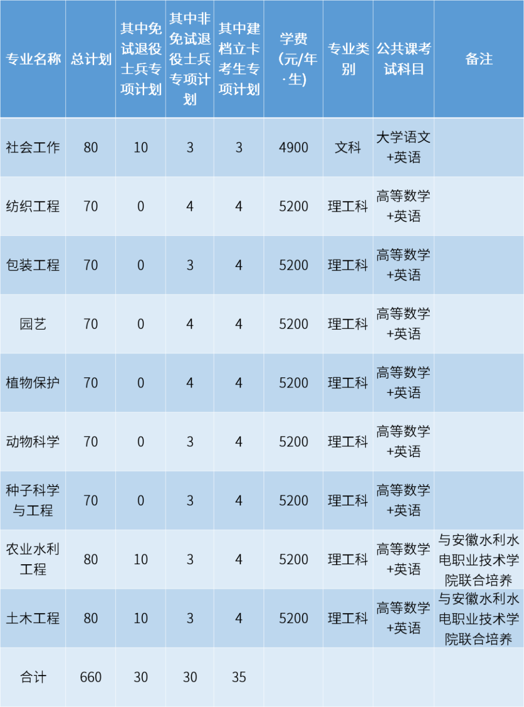 技能大赛获奖考生、免试退役士兵考生面试时间、要求及面试实施办法等将在安徽农业大学本科招生信息网另行发布。
