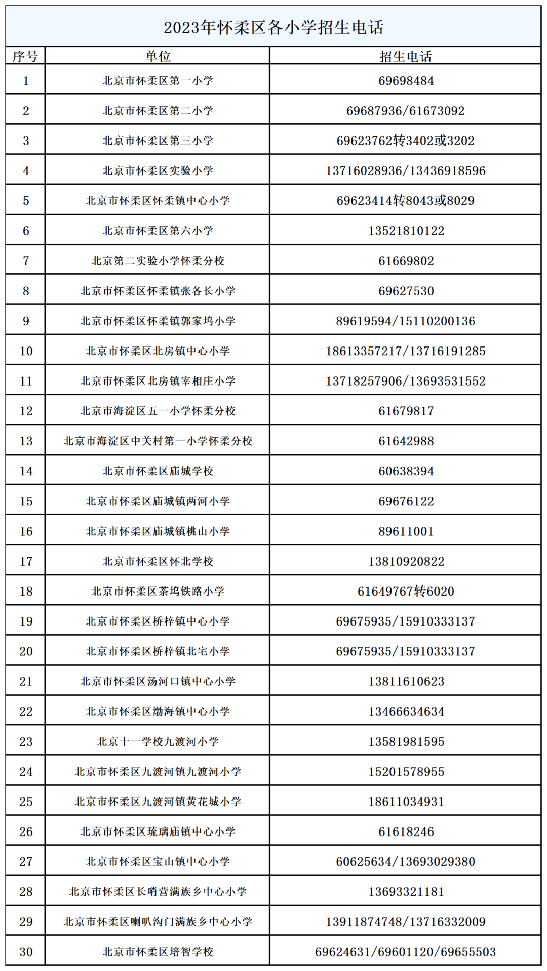 《怀柔区2023年义务教育阶段入学工作的意见》规定的划定服务范围的各小学。