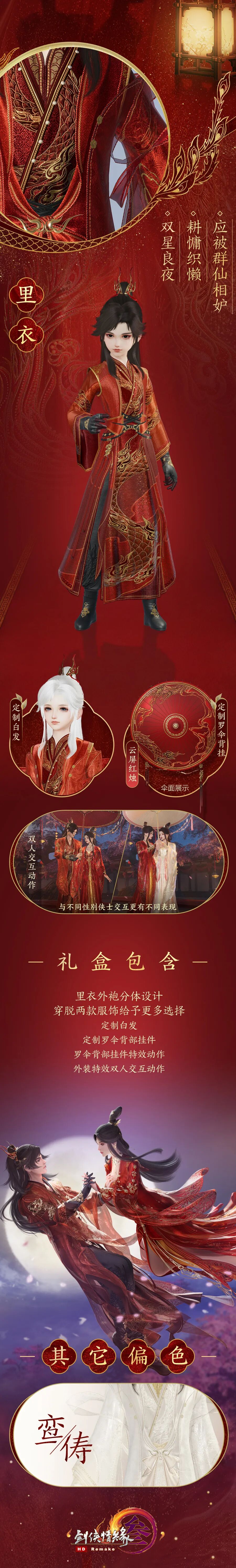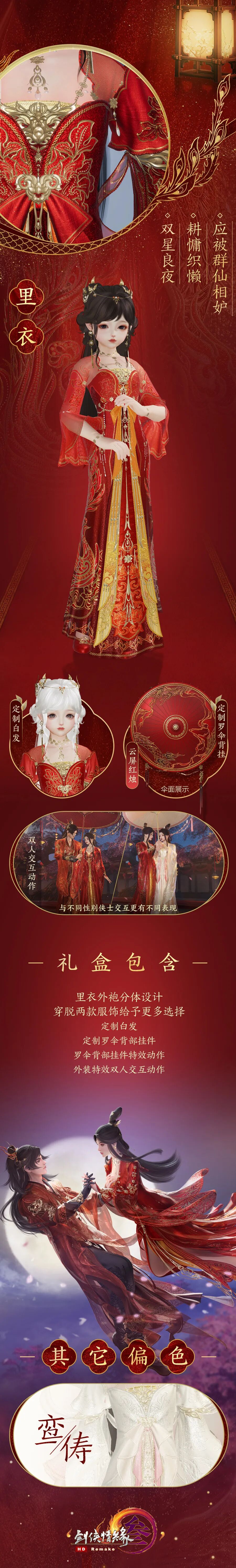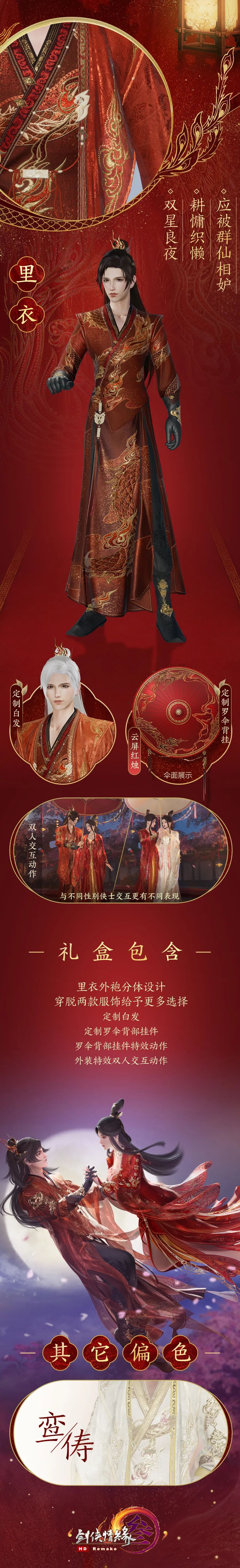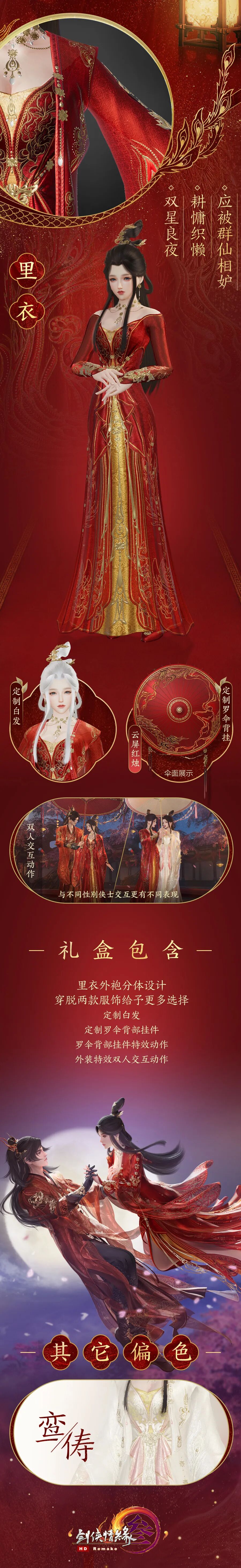 不仅如此,礼盒还有罗伞款式特效背部挂件“云屏红烛”作点睛之笔,同样也有两款偏色可供侠士随心选择!