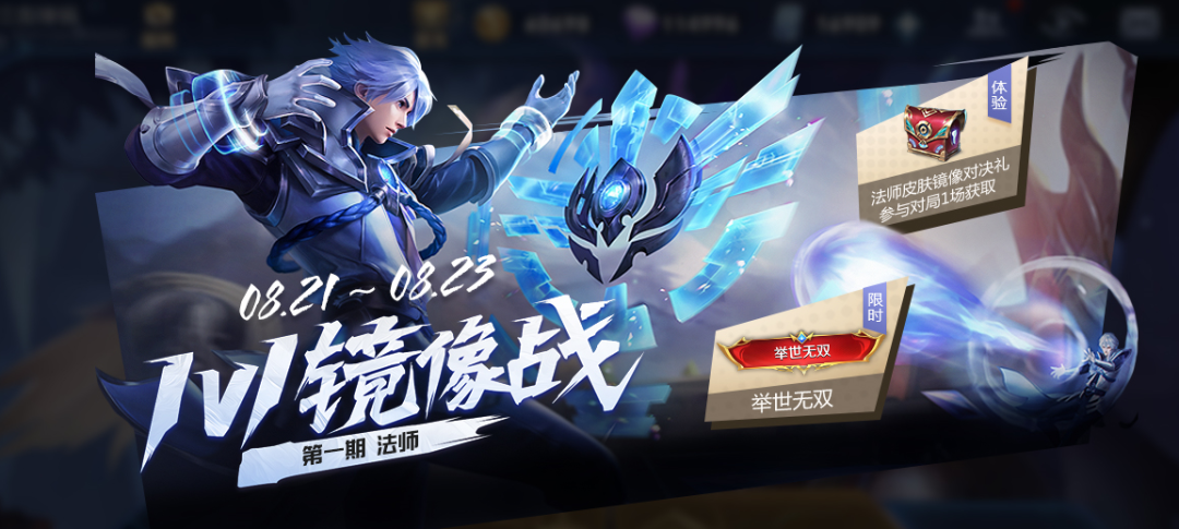 镜像对决模式明日开启,本周开放法师英雄solo,参与1v1镜像对决即送法师皮肤体验宝箱*1,使用同一英雄连胜达指定场次还有荣誉称号!