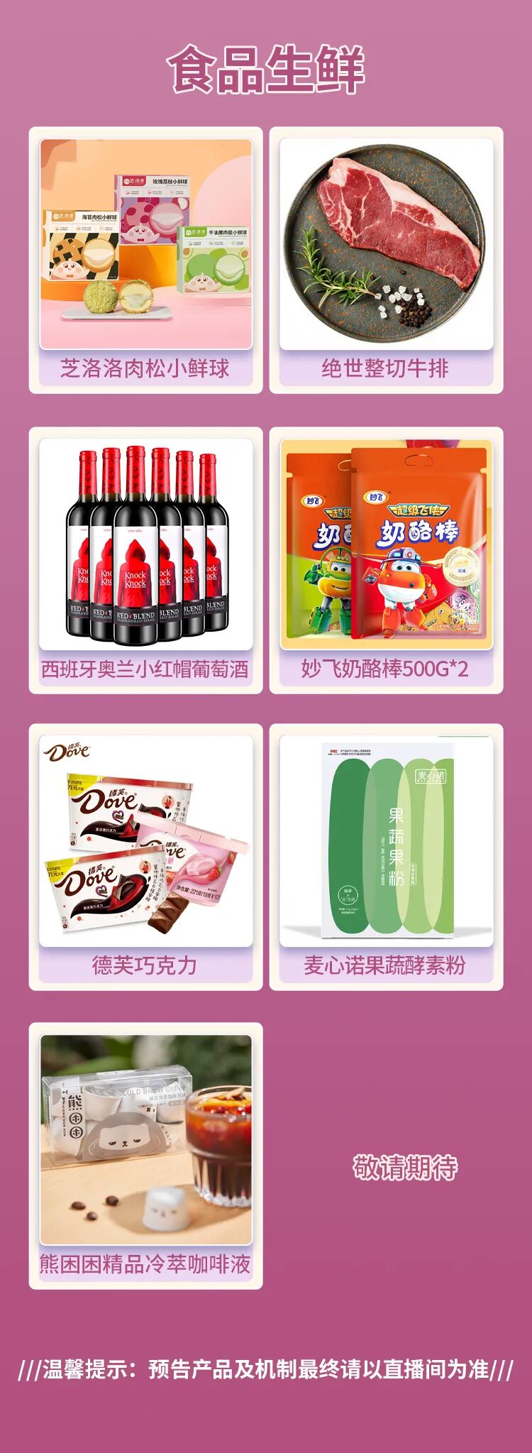 温馨提示:预告产品及机制最终请以直播间为准!