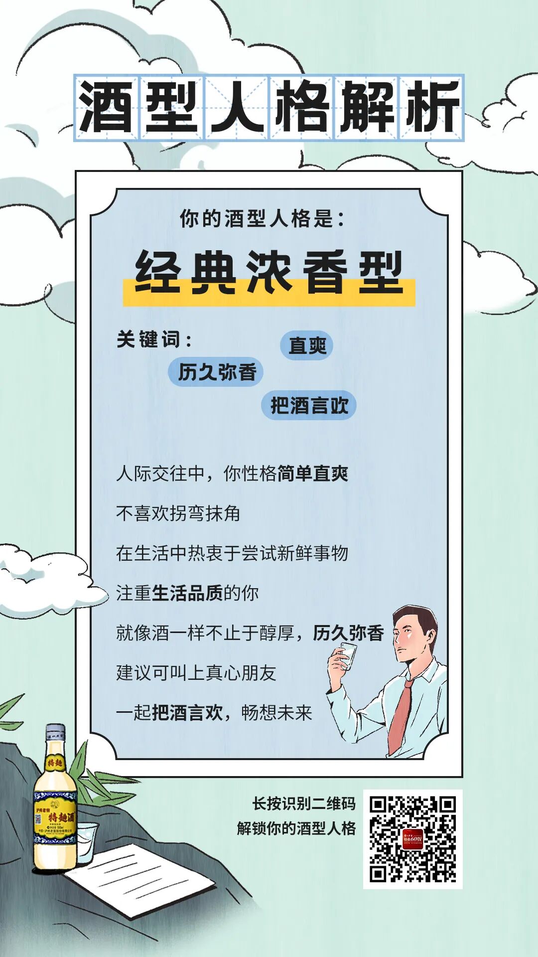 推荐:「点击答题」进行酒型人格测试,最后根据分值对应相应的人格,吸引大家互动分享自己的人格测试结果。