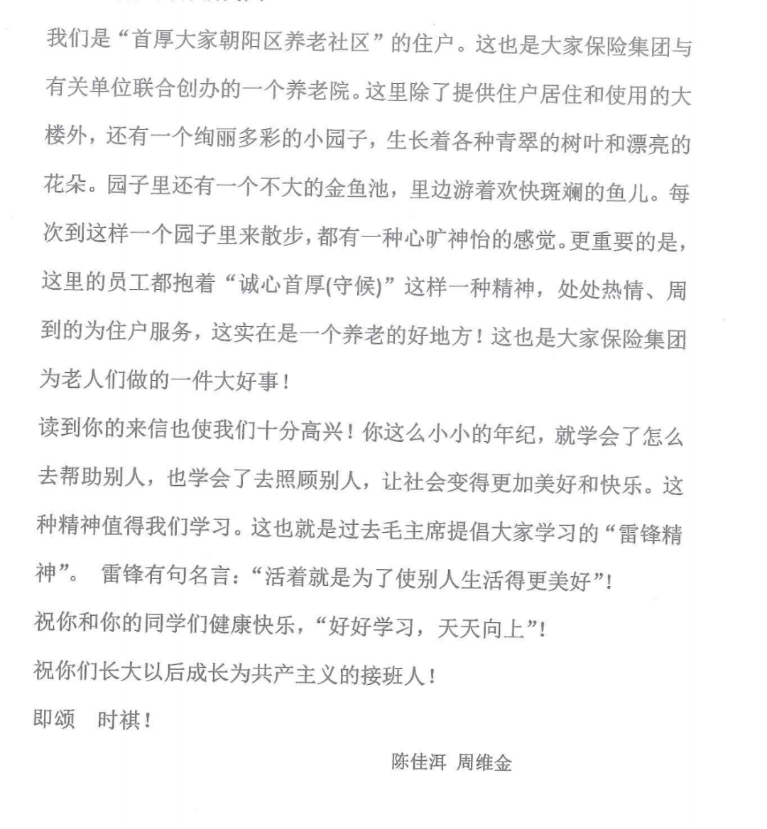 2020年10月,大家保险养老社区住户陈校长和季阿姨开启“大家梦想课堂”,为铜仁市黑岩小学的学生们带来人生励志课和形体课。